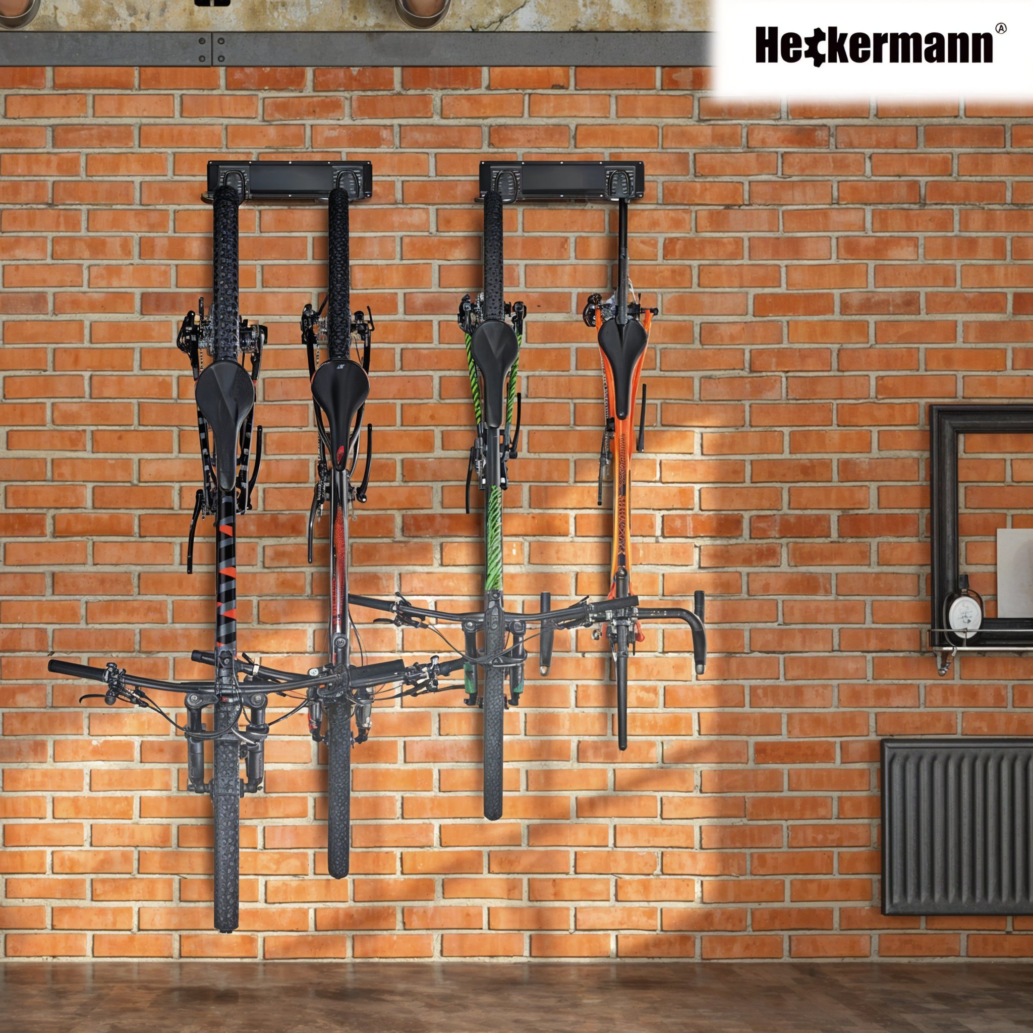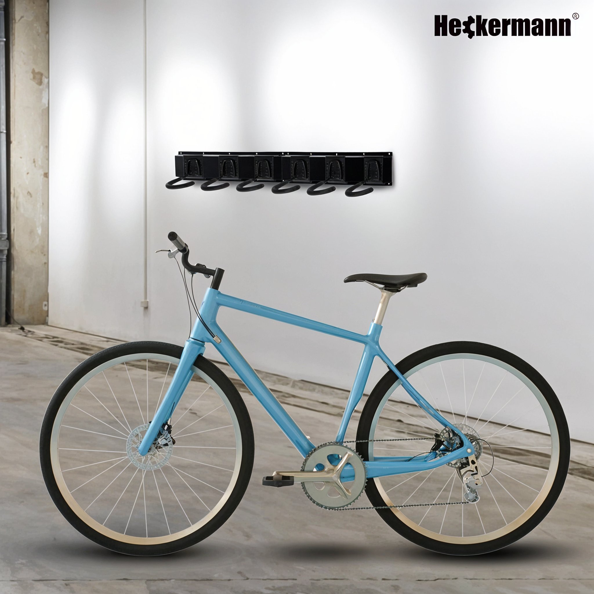 Uchwyt ścienny na rower 6 stanowisk Heckermann – porządek, bezpieczeństwo i oszczędność miejsca w Twoim garażu