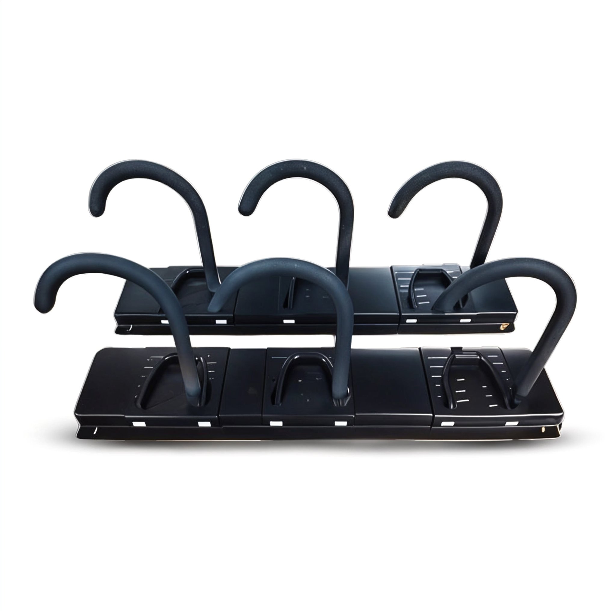 - 6 metalowych haków z grubą piankową osłoną – nie tylko trzymają rower stabilnie, ale też dbają o lakier ramy.